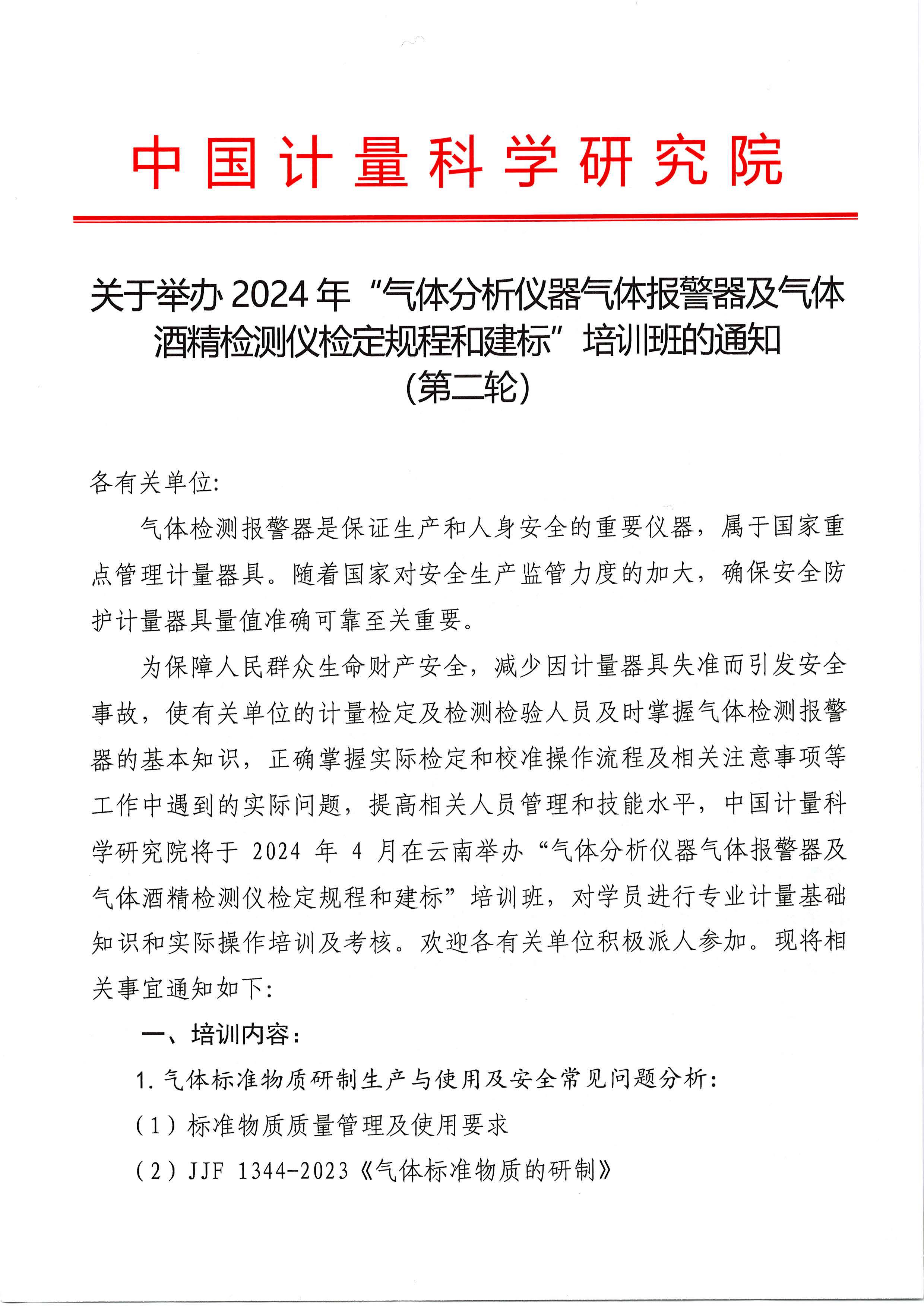 中國計量科學(xué)研究院將于4月26-29日在云南昆明舉辦“2024年氣體分析儀器氣體報警器及氣體酒精檢測儀檢定規(guī)程和建標(biāo)”培訓(xùn)班,歡迎報名參加。
