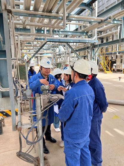 隨后,中心碳計量工作人員實地查看了流量計、汽車衡等碳核算核心計量器具配備和檢定校準情況,并圍繞甲醇制烯烴工段碳核算與監(jiān)測數(shù)據(jù)交叉驗證項目可行性進行深入交流。