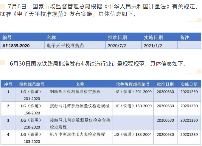 1項(xiàng)國(guó)家計(jì)量技術(shù)規(guī)范,4項(xiàng)鐵路行業(yè)計(jì)量技術(shù)規(guī)范發(fā)布