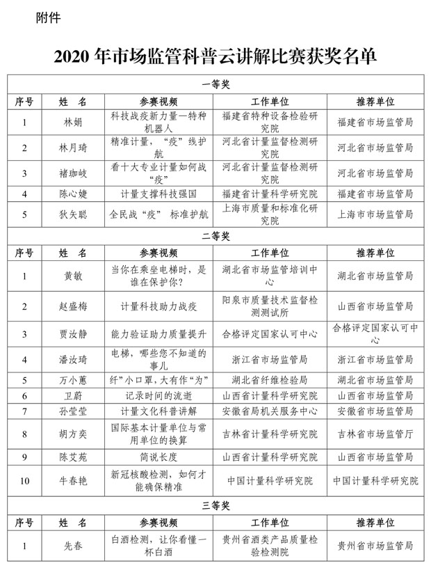 ?附件:2020年市場監(jiān)管科普云講解比賽獲獎(jiǎng)名單