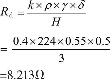 式中:Rd——電解離子接地系統(tǒng)的接地電阻;k——電解離子接地系統(tǒng)效率,為0.4;ρ——土壤電阻率(Ω·m);γ——降阻回填降阻率,為0.55;δ——電解離子接地系統(tǒng)的初始離子擴散半徑,為0.5m;H——電解離子接地系統(tǒng)的長度,為3m。
