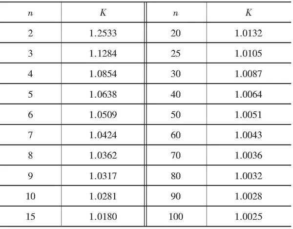 K是與測(cè)量次數(shù)有關(guān)的系數(shù),K值如表1所示。